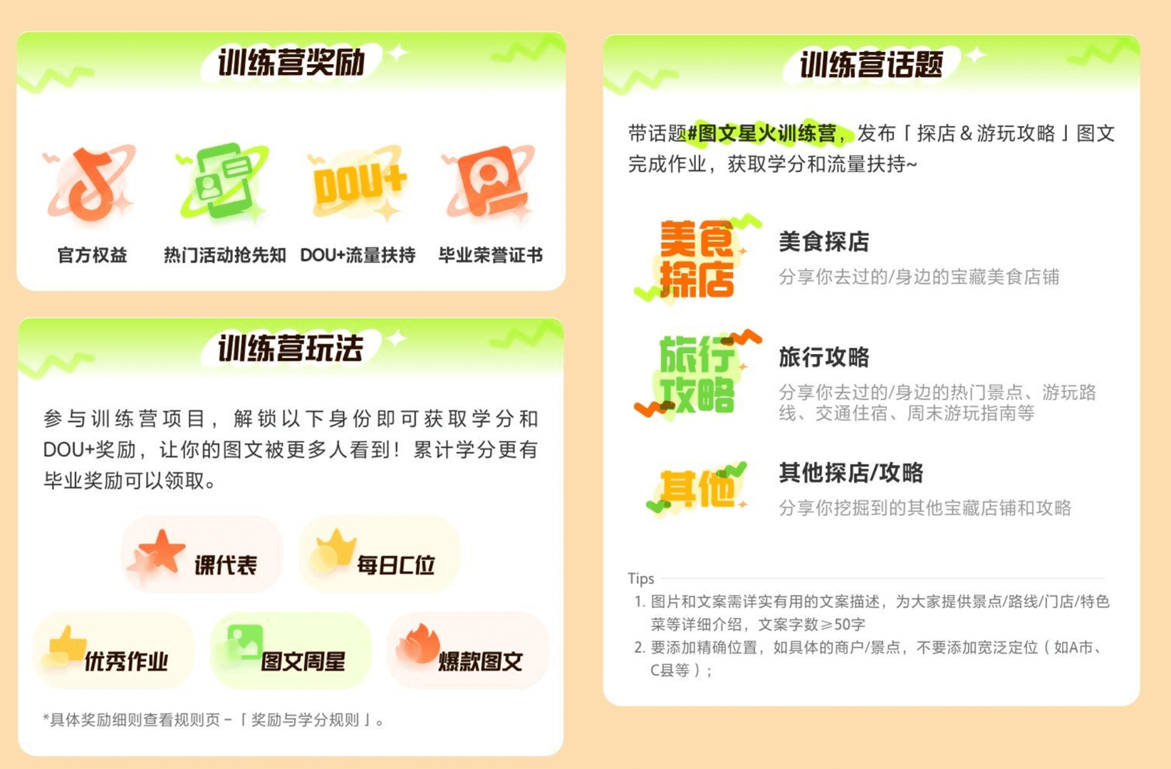 近日抖音官方开启了#抖音图文星火训练营的课程活动,面向1000-1w粉丝的图文作者们,全方面提升你的图文创作能力,让你的图文也能被赞爆!!