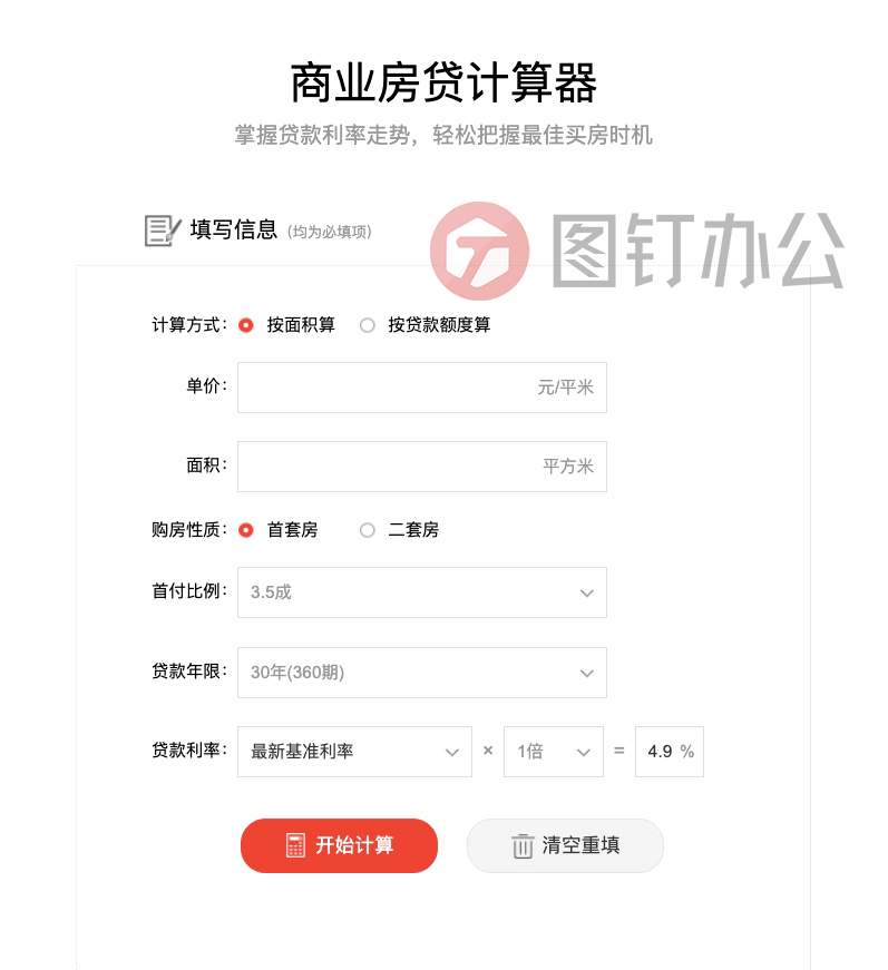 ij计算方式有两种:按面积算;按贷款额度算。输入数据后,一秒计算出月均还款。