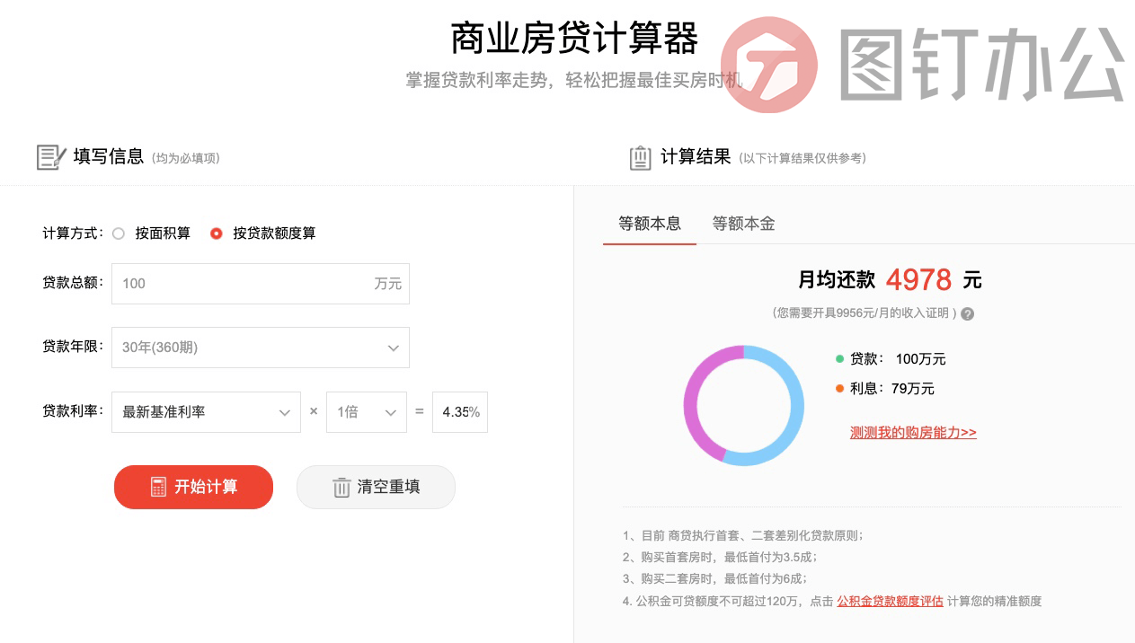 「商业贷款计算器」可以计算商业贷款,其中也包括房贷。如果你想知道自己每个月要还多少钱,这个工具就能帮你计算出。