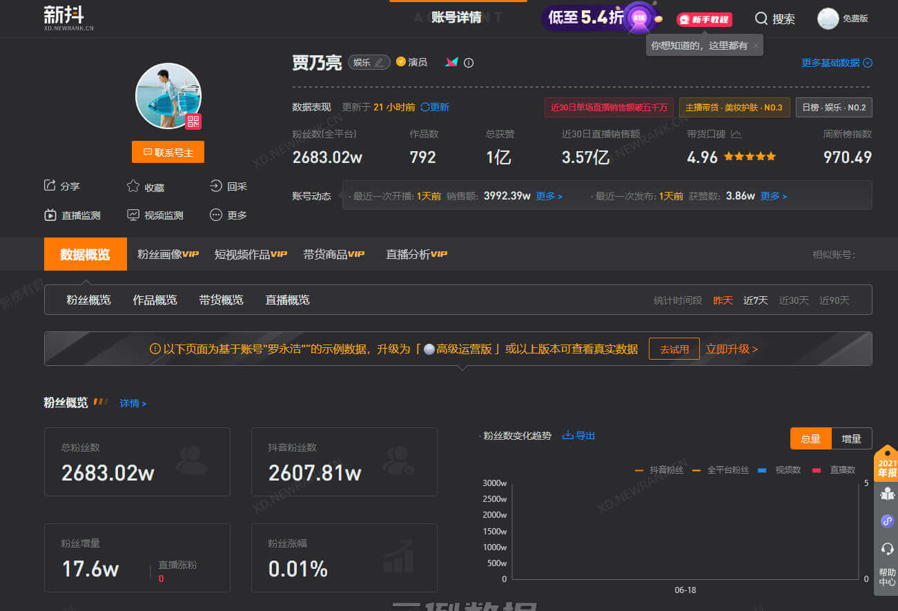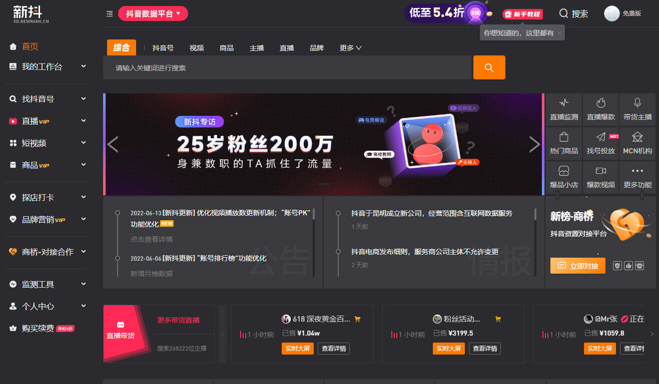 你用可以用它来直播数据检测,查抖音好、查爆款商品、找号投放等!